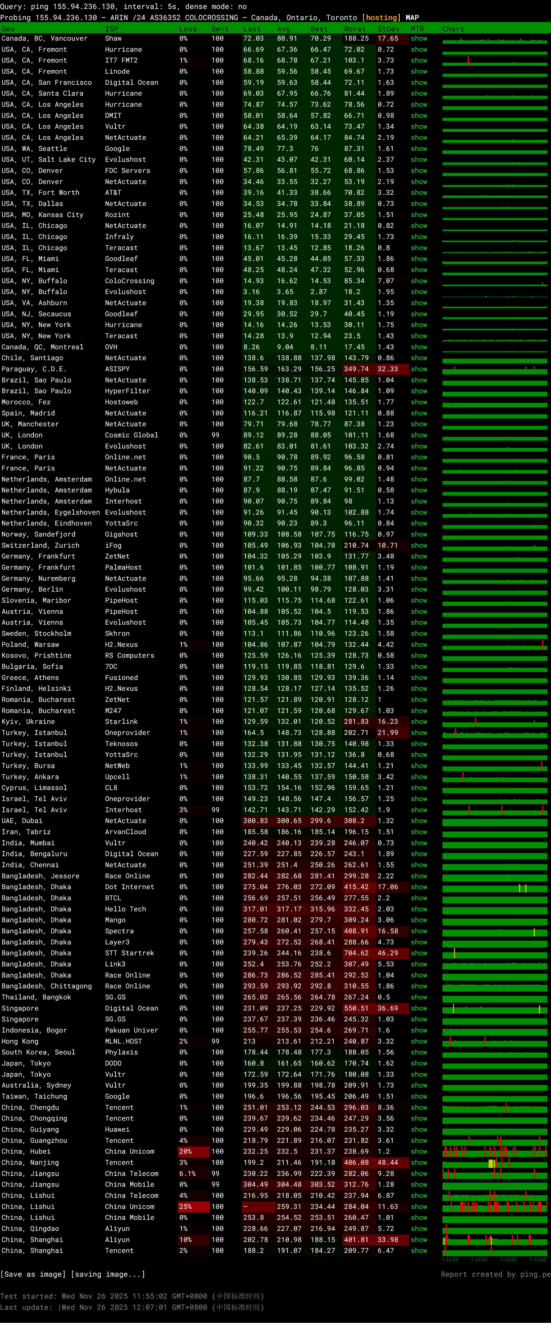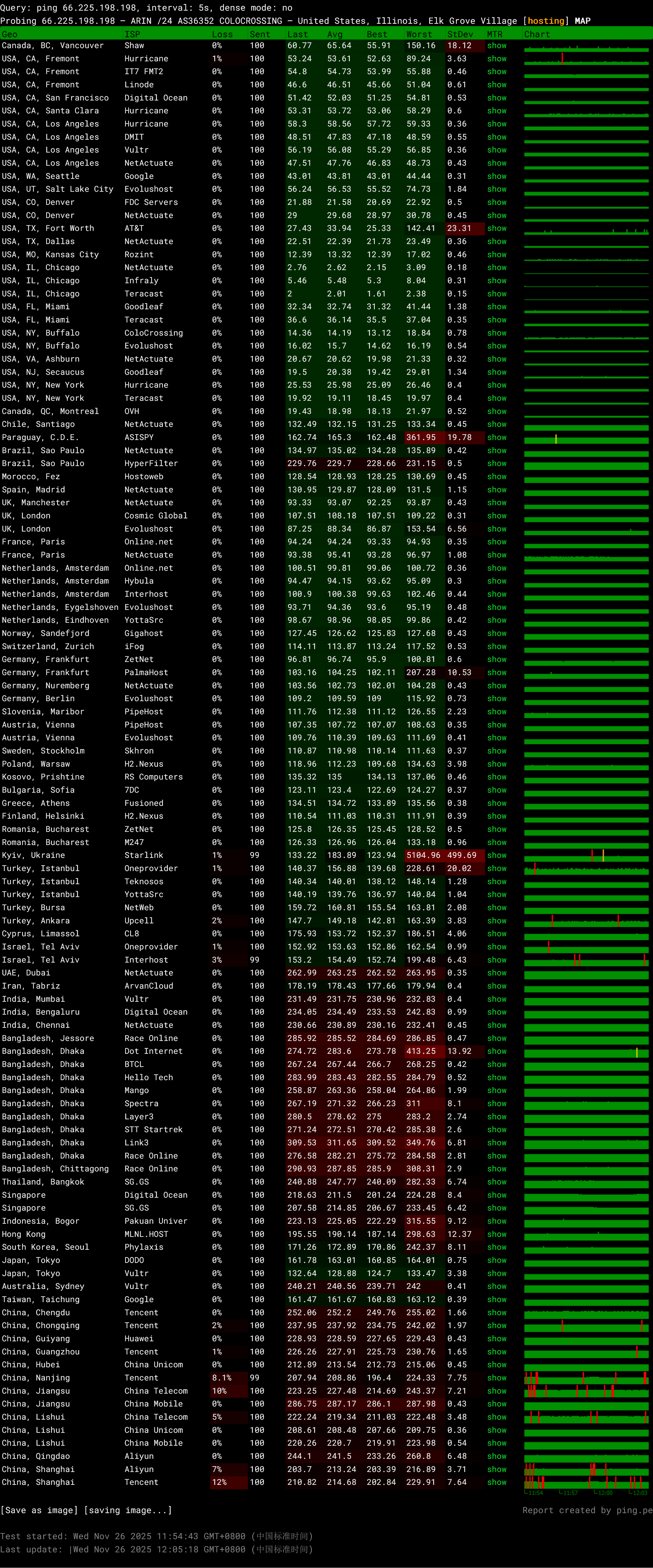 可以自行测速,官方提供的所有机房测速页面:https://lg.atl.colocrossing.com/
